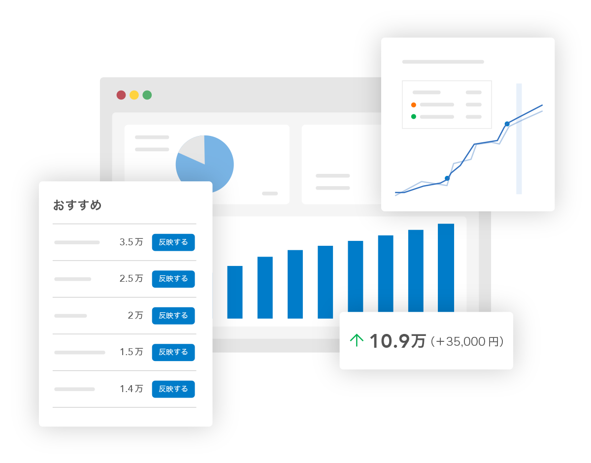 「売上最大化のための需要予測」「どう売り方を変えれば良いか」「競合施設の価格はどう変化したか」「過去と比べた業績」「売り方を変えた効果はどうだったか」など、現状が一目でわかります。
